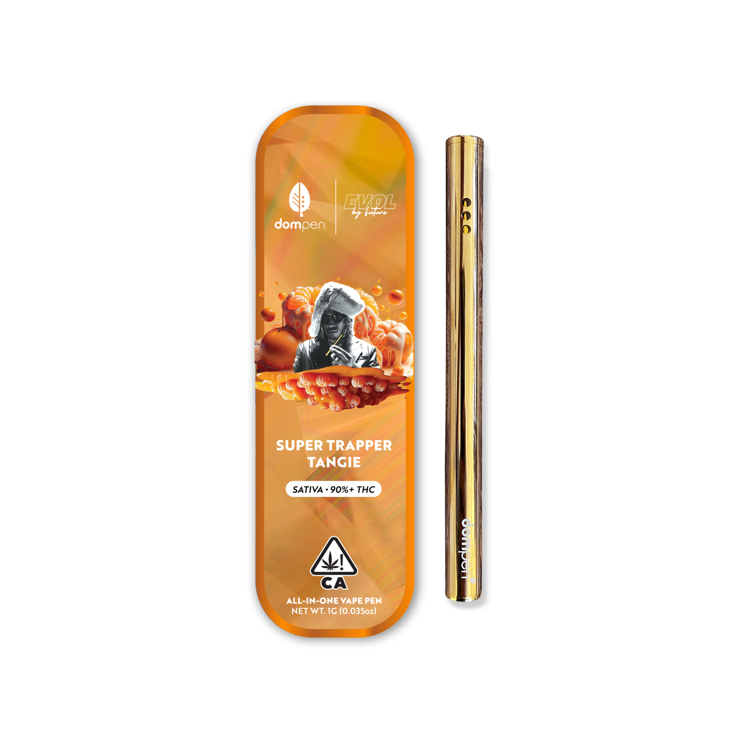 dompen is multi-platinum recording artist Future’s exclusive all-in-one vape pen. Super Trapper Tangie is a bright and citrusy sativa-dominant strain that is formulated for daytime use. All EVOL strains test at 90%+ THC and are infused with flavorful fruity terpenes to guarantee a discreet and consistent experience wherever, whenever.