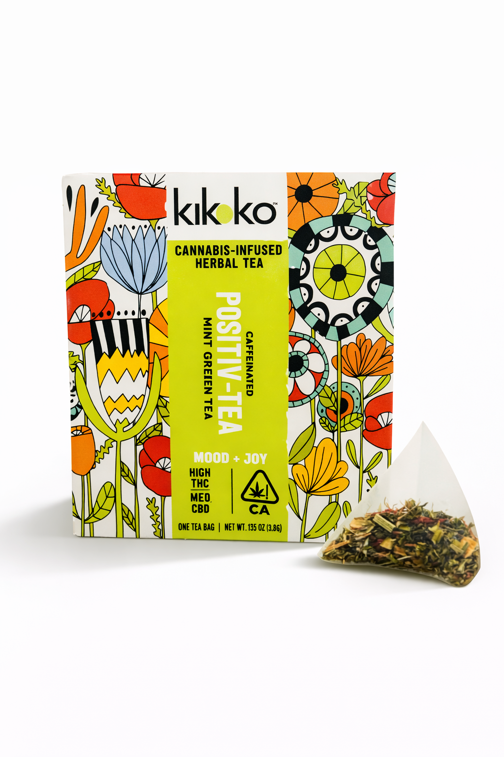Brand:KikokoType:Edibles, Drinks, TeaNutrition:Gluten Free, Vegan, Organic, CaffeinatedPotency:10mg THC + 5mg CBDIngredients:Peppermint, green tea, spearmint, licorice root, lemon myrtle, lemongrass, safflower petals, evaporated cane juice, gum arabic.Instructions:Potency will not increase after 2 minutes. Steep in 4-6 ounces of boiling water. Feel the effects in 30-90 minutes.